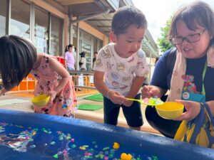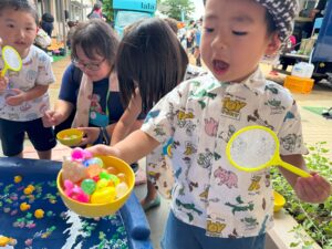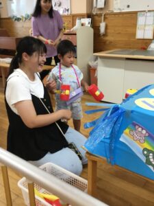 前日から、雨の心配がありできるかどうか不安でしたが、なんとか天気が持ち直してくれて園庭で開催することが出来ました♡