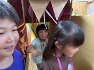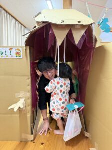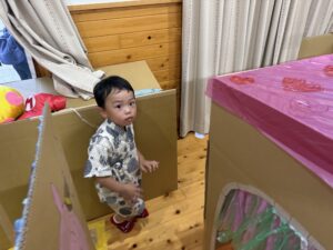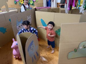 段ボール迷路は、コバシさんのおかげでいいものが出来、何度もチャレンジしたり楽しんでいました♡