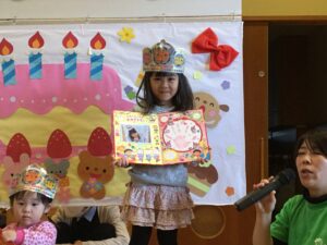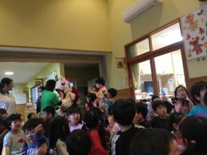 サンタさんへの質問で、好きな食べ物は?などたくさんの質問タイムがありました(^^♪ お友達に、お菓子のプレゼントもくれました(^^♪