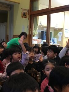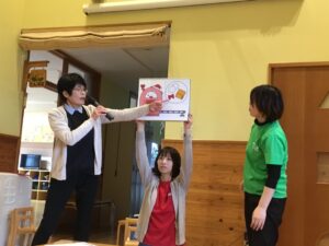 先生からの出し物は、スケッチブックシアター(*^▽^*)初めてのお話だったのでワクワクドキドキしながら真剣に聞いていました。