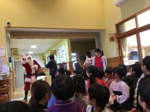 サンタさんへの質問で、好きな食べ物は?などたくさんの質問タイムがありました(^^♪ お友達に、お菓子のプレゼントもくれました(^^♪